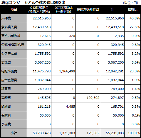 2024年度のコンソーシアム全体の支出は55,231,083円(表①)です。