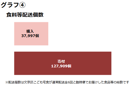 また、主な運営資金は、ふるさと納税の仕組みを活用したガバメントクラウドファンディングにより集めています。このふるさと納税(ご寄付)は文京区で管理し、毎年度必要になるこども宅食の運営費に補助金として支払われています。