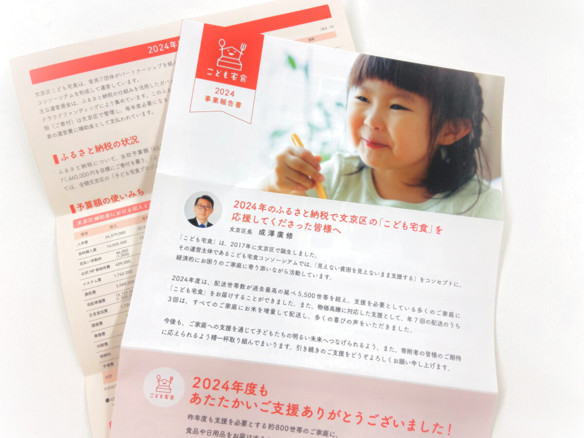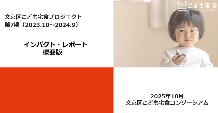文京区内の経済的に困窮する子育て世帯へ2ヶ月に1回定期的に食品をお届けしている「こども宅食」を運営する「文京区こども宅食コンソーシアム」(https://kodomo-takushoku.jp/)は、文京区内約800世帯のこども宅食利用家庭に行ったアンケート調査結果をもとに、事業が生み出した効果・成果に加え、事業の実施状況や利用家庭の実態、ニーズを取りまとめた、第7期(2023.10~2024.9)インパクト・レポートを公開します。